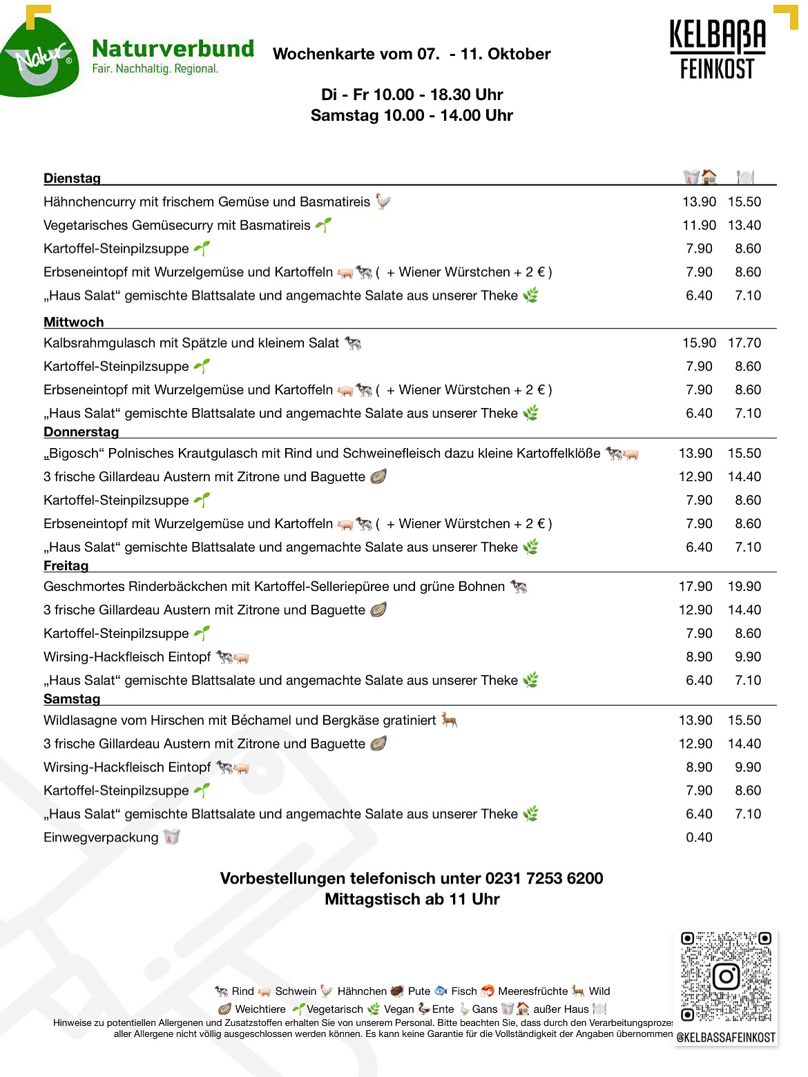 Genießen Sie außerdem unseren täglich wechselnden Mittagstisch – frisch gekocht und perfekt für Ihre Genussmomente zwischendurch.