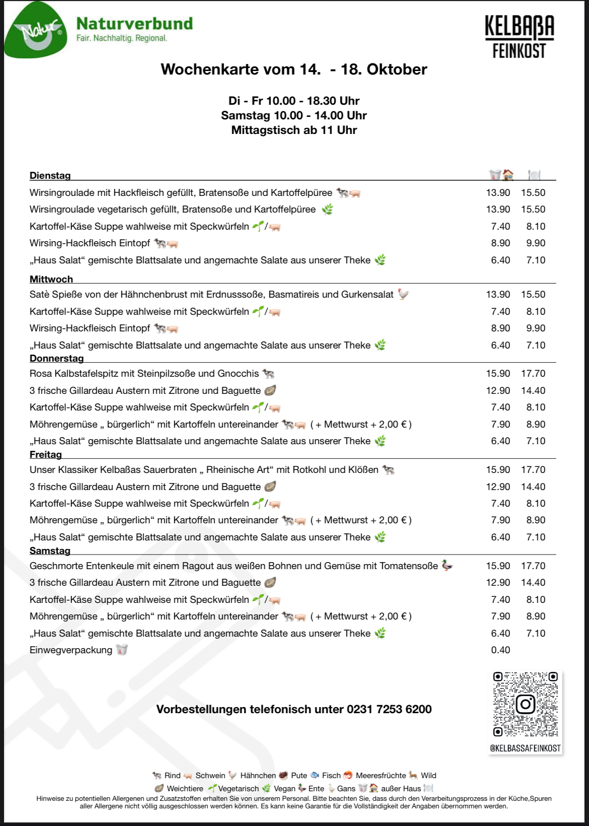 Genießen Sie außerdem unseren täglich wechselnden Mittagstisch – frisch gekocht und perfekt für Ihre Genussmomente zwischendurch.