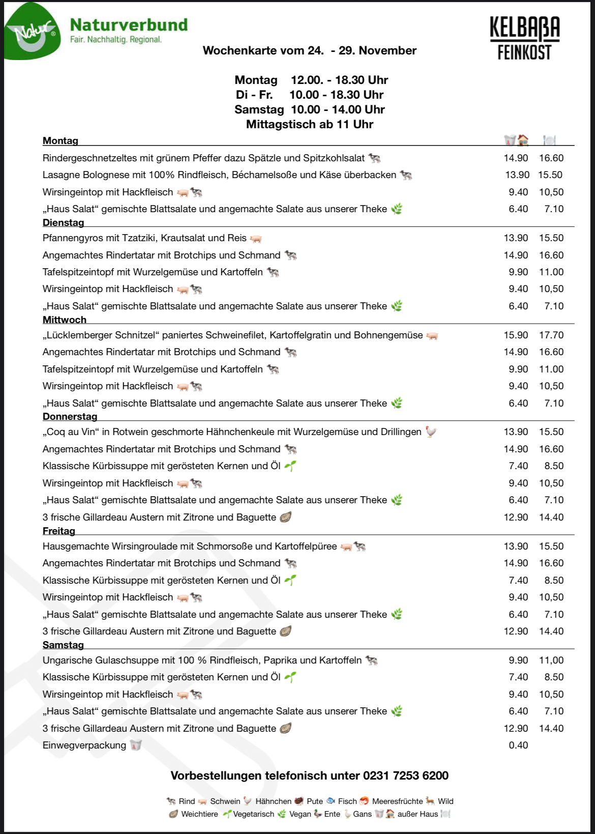 Genießen Sie außerdem unseren täglich wechselnden Mittagstisch – frisch gekocht und perfekt für Ihre Genussmomente zwischendurch.